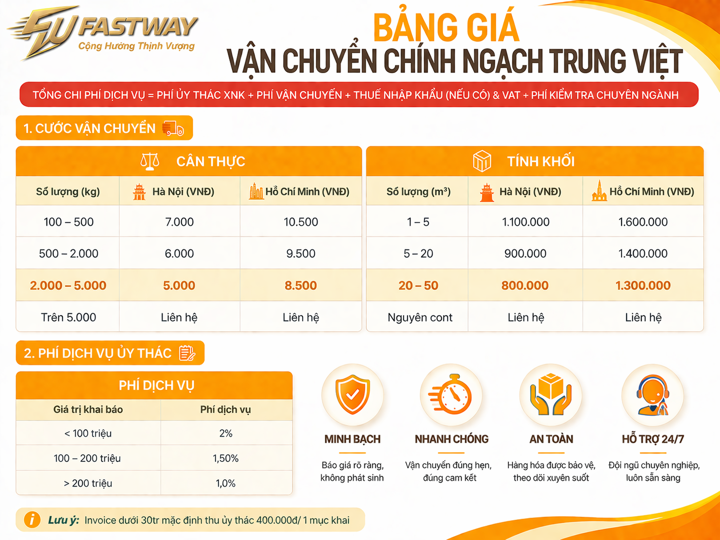 Biểu Phí Nhập Hàng Chính Ngạch
