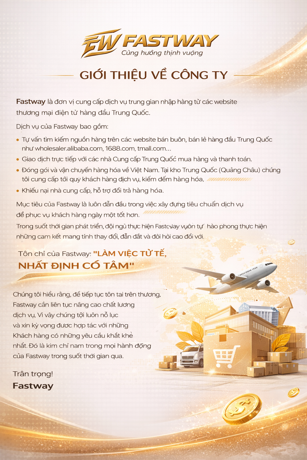 Fastway Logistics là giải pháp nhập hàng tối ưu cho quý khách. Chúng tôi mang lại cho khách hàng nguồn hàng phong phú với mức giá cực rẻ.